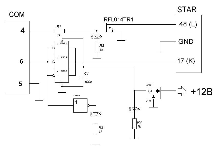 Основния проблем при свързване на нещо към COM порта е преобразуването на нивата COM порта работи с логически нива +12V(лог.1) и -12V(лог.0) а 0V не върши работа.