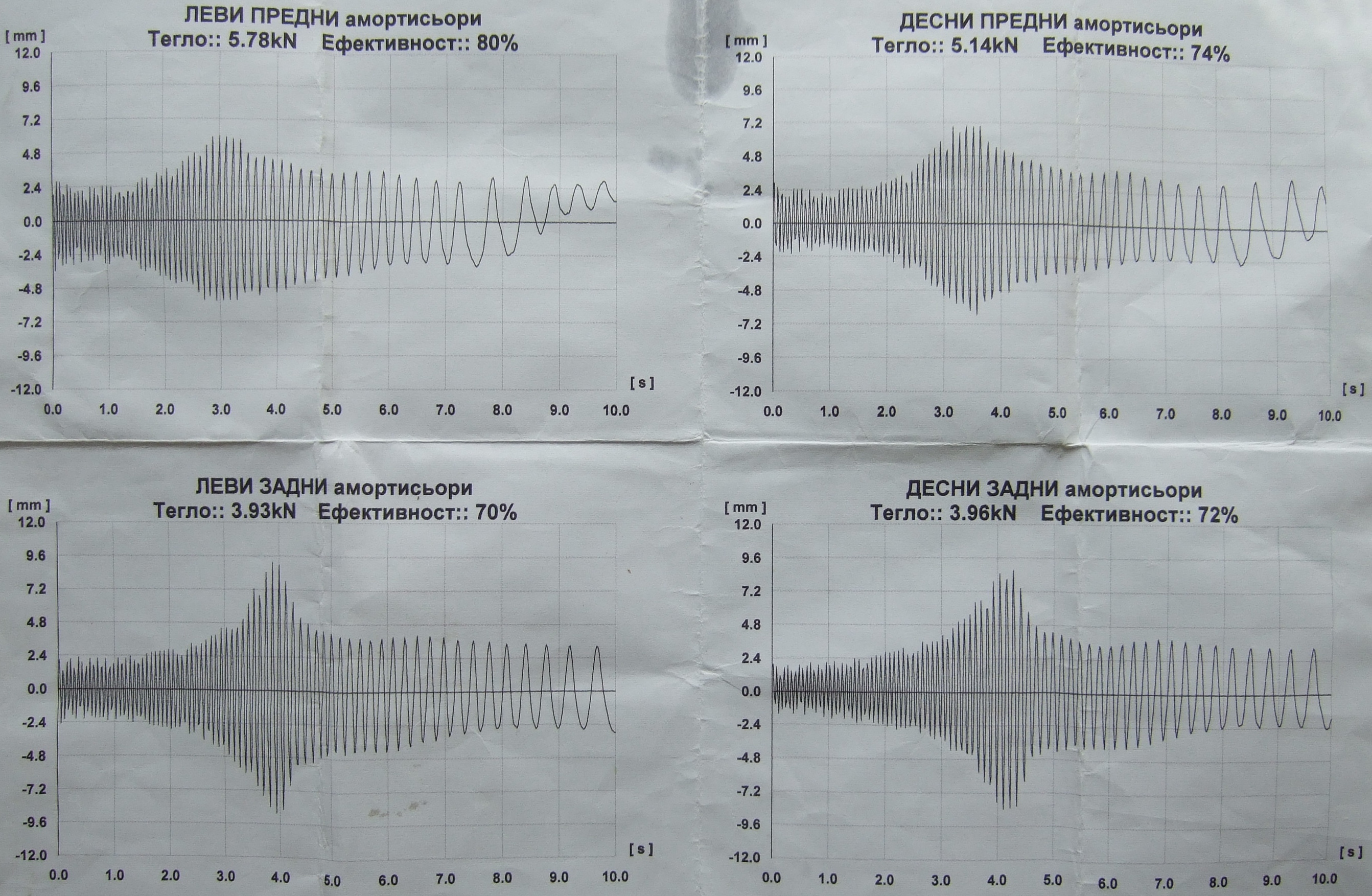 Колата не е претърпявала такъв удар , а ако е имало такова събитие някога, то не отличен, а перфектен ще дам на тенекеджиите работили със заводско качество.Тъй като има и картинки, както и показания от стенд за амортисьори но все още няма никакво мнение , то имам питане .Каква е разликата между изпуснал и блокирал амортисьор/и .Благодаря