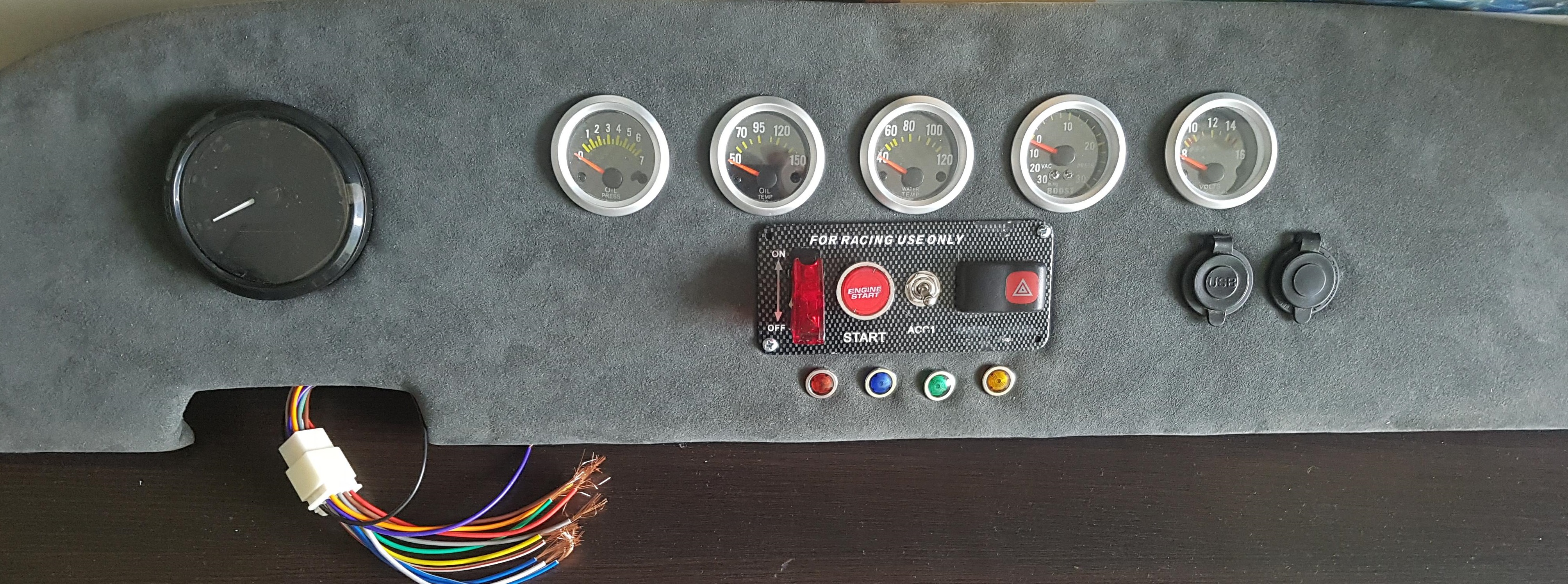 След като и бензинът и въздухът бяха готови, можеше да започнем инсталацията. На мен се падна удоволствието да направя таблото, като минах през няколко варианта, но мисля, че стана доста добре.