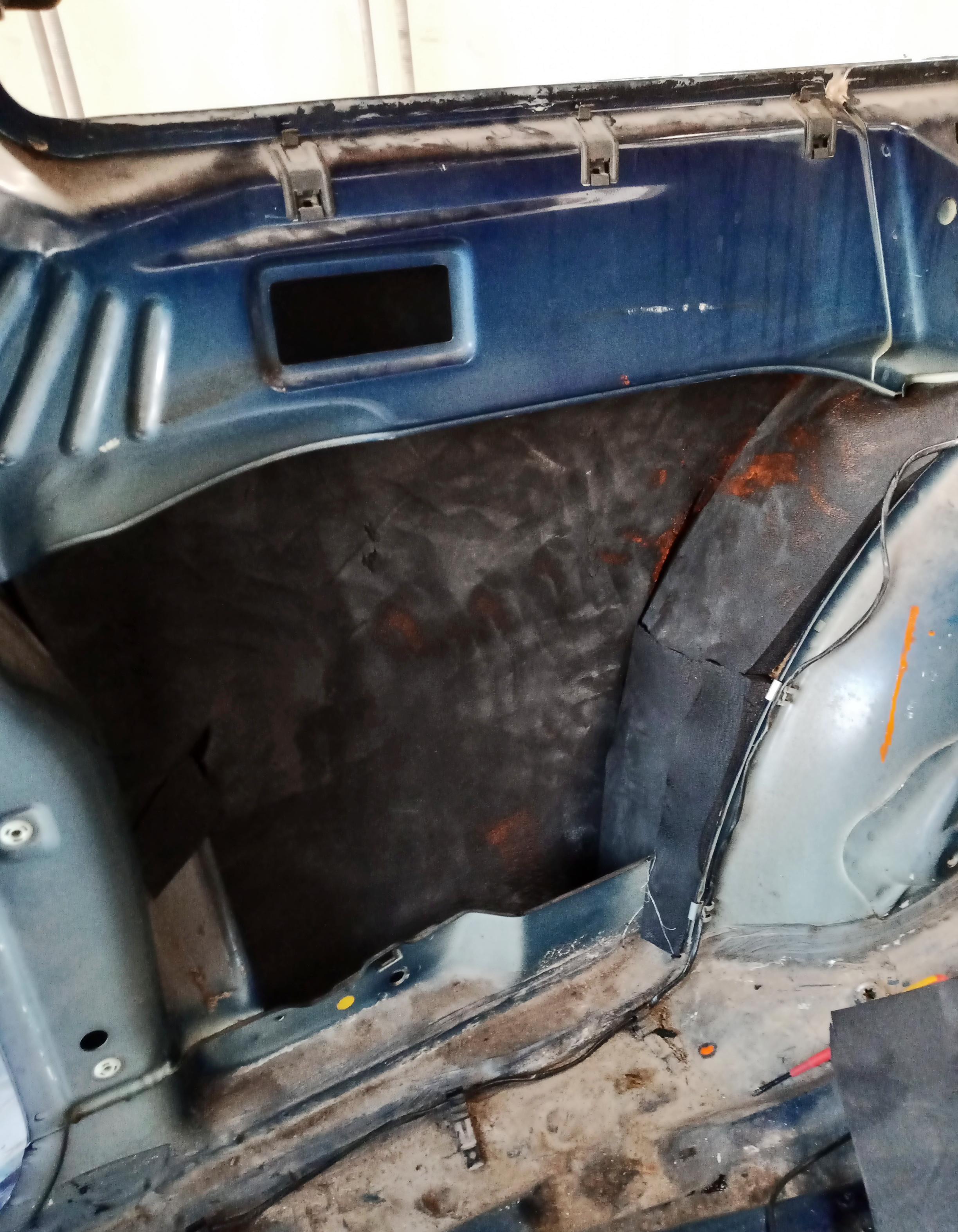 Тъй като купето беше изкърпено от предния собственик, аз се захванах с обработката против ръжда. Като за първи покритие непосредствено върху метала се доверих на стария и доказан във времето оловен миниум. Неговата роля е съществена, тъй като с него се образува слой железен оксид!