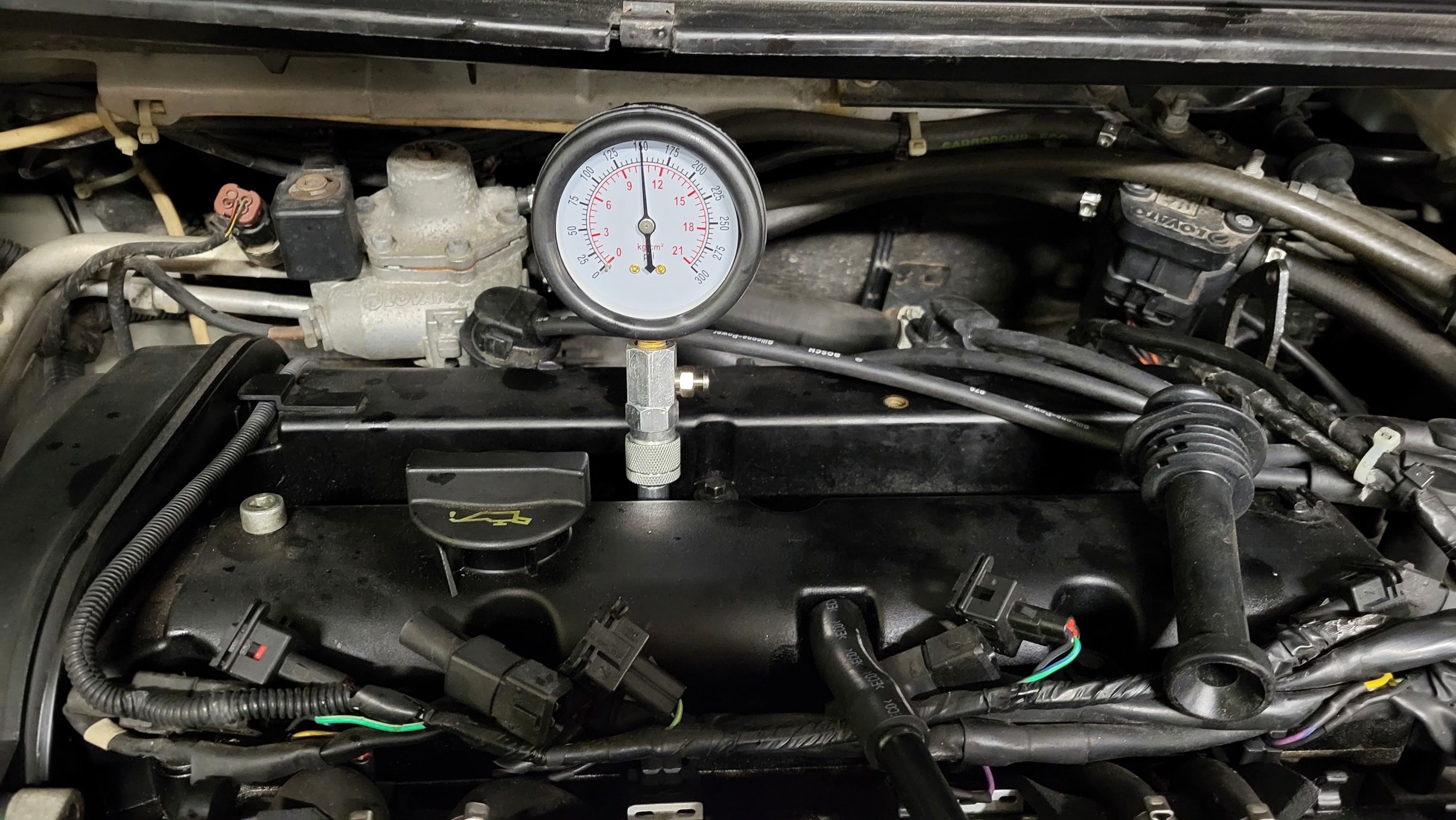 През това време ми дойде барометъра за мерене на компресия. Ето и компресията на цилиндрите за пълнота на картината.