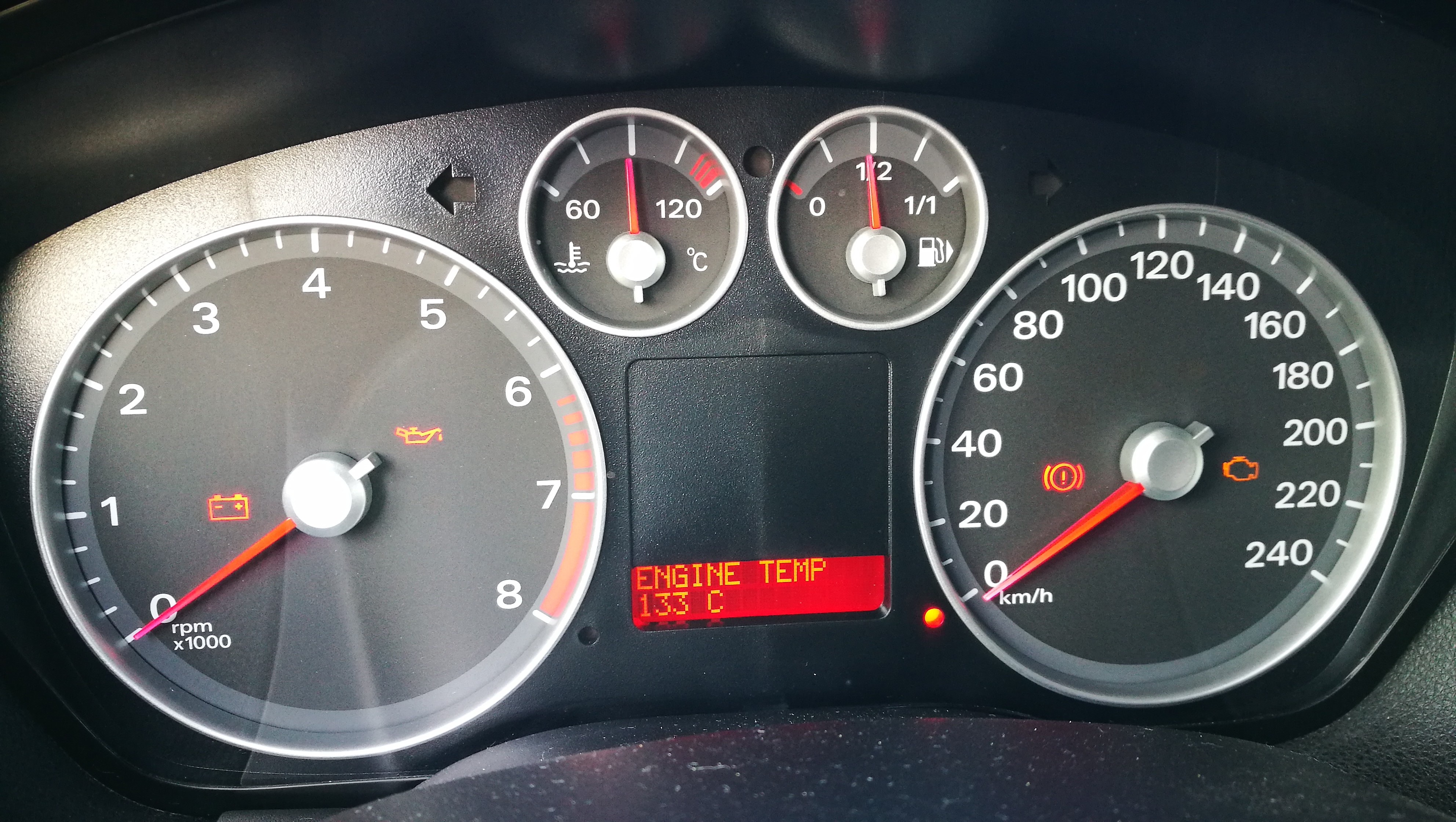 Проверих температурата на двигателя в сервизния режим и при студен двигател ми показа 53 градуса, а след като загря 132. На 132 градуса вентилатора се беше включил, но работеше тихичко на 1-ва скорост явно. Доколкото разбрах от форумите, градусите в сервизен режим били в 8-чна система (кой знае защо), което означава около 40 градуса разлика, демек при студен двигател ми показва 13, а при загрят 92. Значи към 90 градуса перката ми се включва на 1-ва скорост за няма и 10 мин градско каране при външна температура под 10 градуса с изключен климатик. Нещо не е у ред.