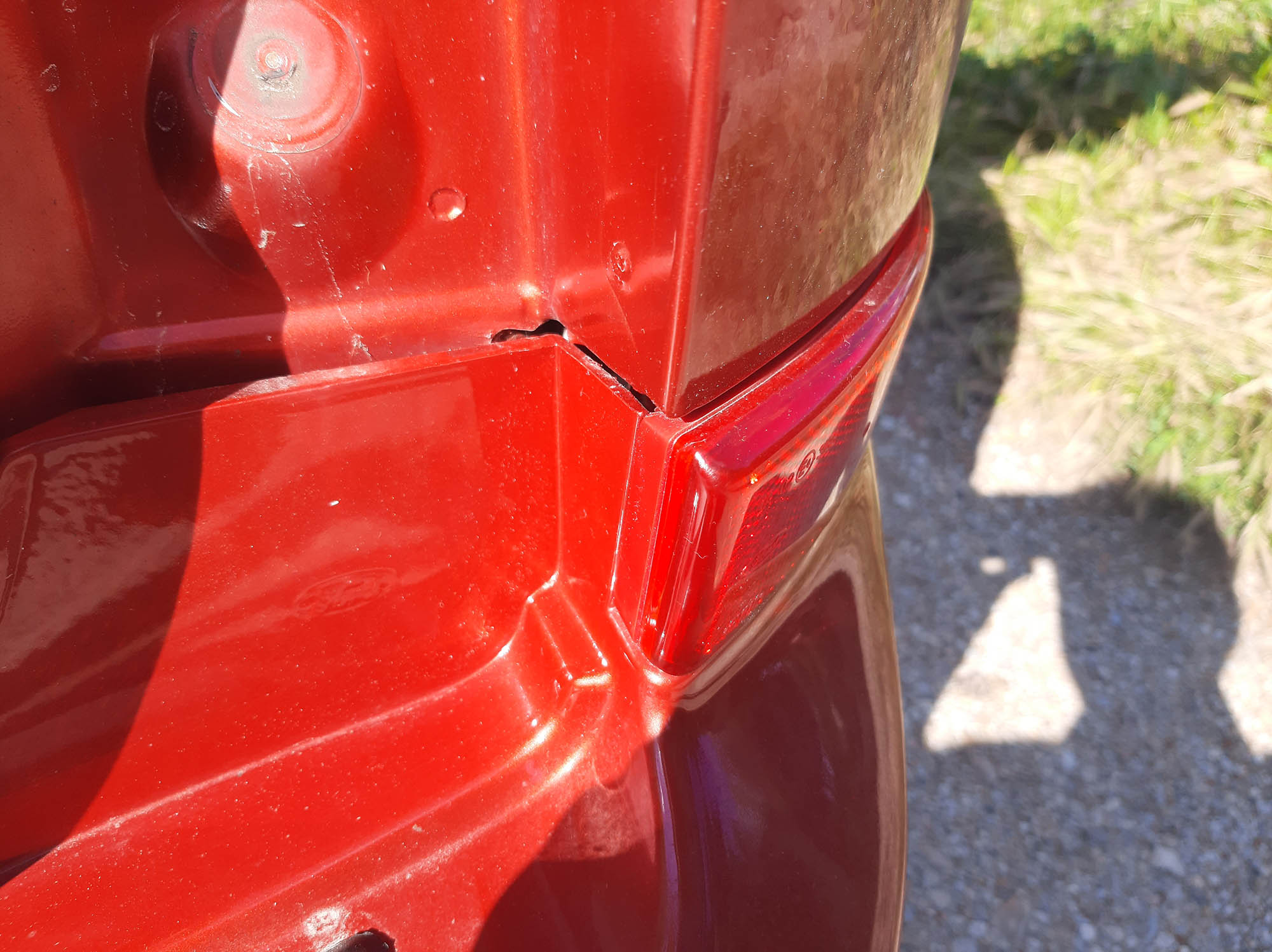Не виждам да имаш някакъв голям проблем. Може би бронята не е оригинална, или не е ремонтирана правилно, защото не съвпада точно с формата на светлоотразителя, но дори и да е така не се забелязва особено. Поне от снимките де.