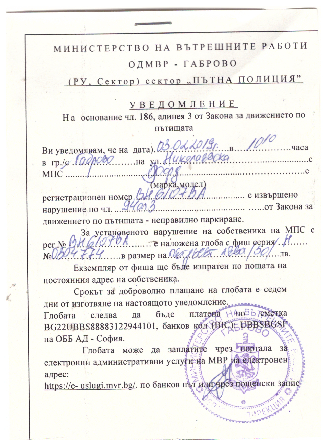 Зачудих се, защото на фиша пише сектор "ПЪТНА ПОЛИЦИЯ"