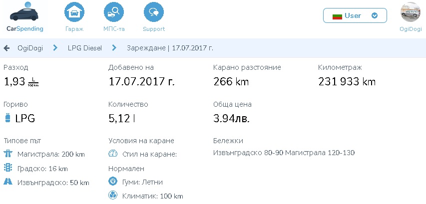 След последните пипания и настройки на помпата, разходът още падна. Сравнение по един и същи маршрут (повечко товар и повече градско вторият път):