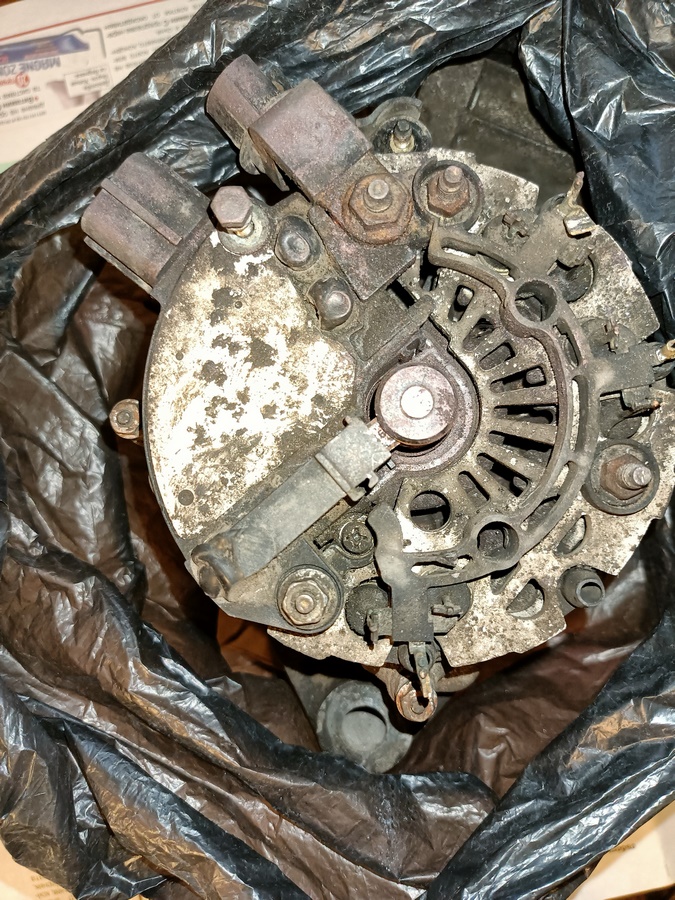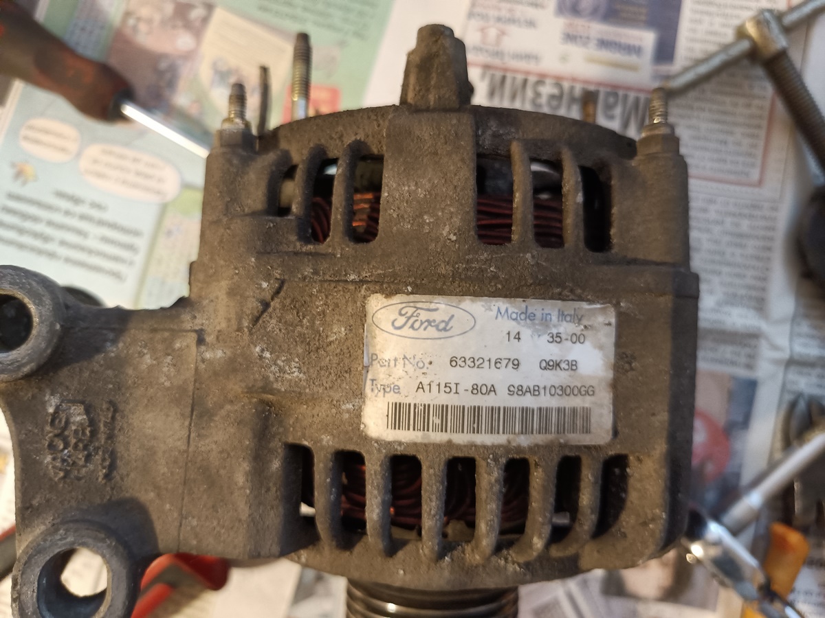 Днес на единият Форд смених алтернатора с нов купих го за 100 евро с гаранция една година някакъв Полски реших че няма смисъл да го рециклирам защото ми искат същите пари. Отне ми 30 минути за цялата процедура по смяната пред блока старият го разглобих почти всичко беше заминало колекторни пръстени диоден мост четките на реле регулатора и единият лагер вече жужеше. По нататъка ще напиша кави са чистите ако някой реши да рециклира въпреки че се разглобява много лесно.