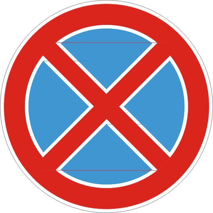 Използва се за въвеждане на забрана за престой и паркиране в пътен участък, в който спрелите ППС затрудняват или пречат на пътното движение, като ограничават видимостта и широчината на платното за движение. Използва се за сигнализиране на пътен участък, в който не е осигурено минималното разстояние за видимост. Задължително се поставя пред тунел с двулентово платно за движение с двупосочно движение. Въведена забрана е в сила до следващото кръстовище или до пътен знак отменящ забраната. Забраната по отношение на престоя не се отнася за ППС, обслужващи лица, които притежават документ за инвалидност, за ППС от редовните линии за обществен превоз на пътници, движещи се по утвърдения им маршрут, както и за ППС, превозващи болни до или от здравно заведение, за времето, необходимо за слизане или качване на болния.