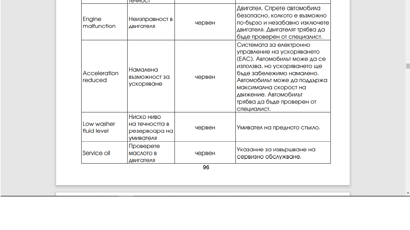 каза,че излиза- разминаване в позиционирането на ванос-а към разпределителния вал,в следствие на смяната на ремъка.Въпроса ми е,дали мога да карам така няколко дни,понеже ми предстои утре пътуване извън града,а въпросният майстор ,който направи обслужването на колата не е в града и чак в сряда може да я приеме отново.Може ли да карам така със светеща лампа ЧЕК и с предупреждение с удивителна в челвено и надпис НАМАЛЕНО УСКОРЕНИЕ до сряда,защото ми казват,че нямало проблем така да си карам.Но аз се съмнявам,все пак това е и предупреждение в червено.Някой имал ли е този проблем и какво да правя ? ЧЕК-а свети нон стоп,знам,че това не е проблем за спиране от движение,но предупреждението в червено ту свети,ту не.При включване на двигателя ,ако светне си стои до изключване и вадене на ключа,но преди малко не изписа проблема.Няма как да знам обаче кога ще го покаже и кога не.