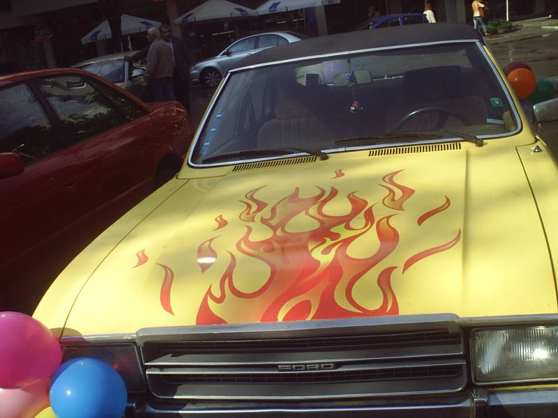 Покарай абитуриентските балове ми хрумна идеята за малко огнени пламъци на предния капак. Получи се доста ефектно!!!