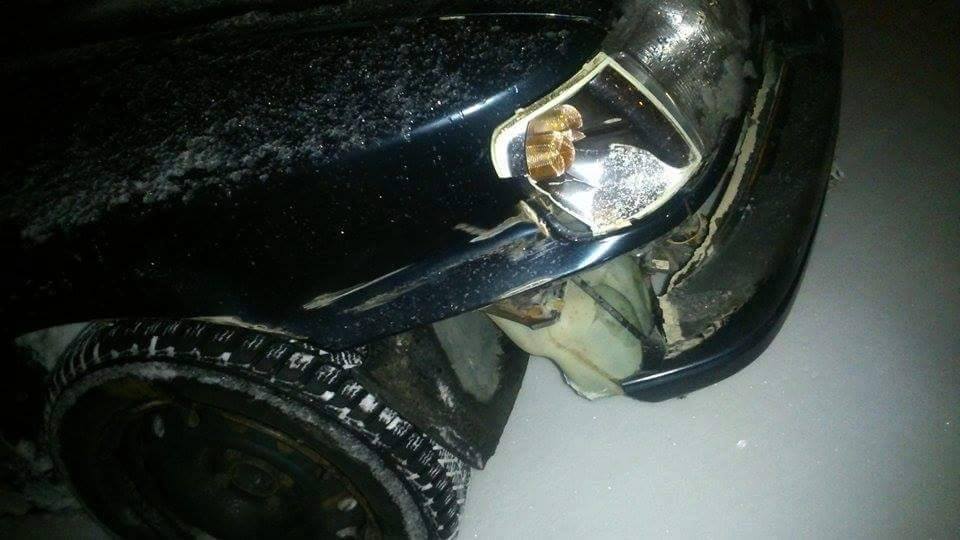 Първите жертви бяха задната броня, десните врати, задния десен калник, предния десен калник, предна броня и десния мигач. Разбира се, това не ме спря и продължих да карам така колата.