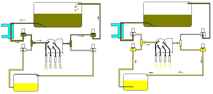 Обаче е нужно и още два клапана за върнатото от помпата и дюзите гориво - да се разпределя съответно в резервоара за олио и нафта.