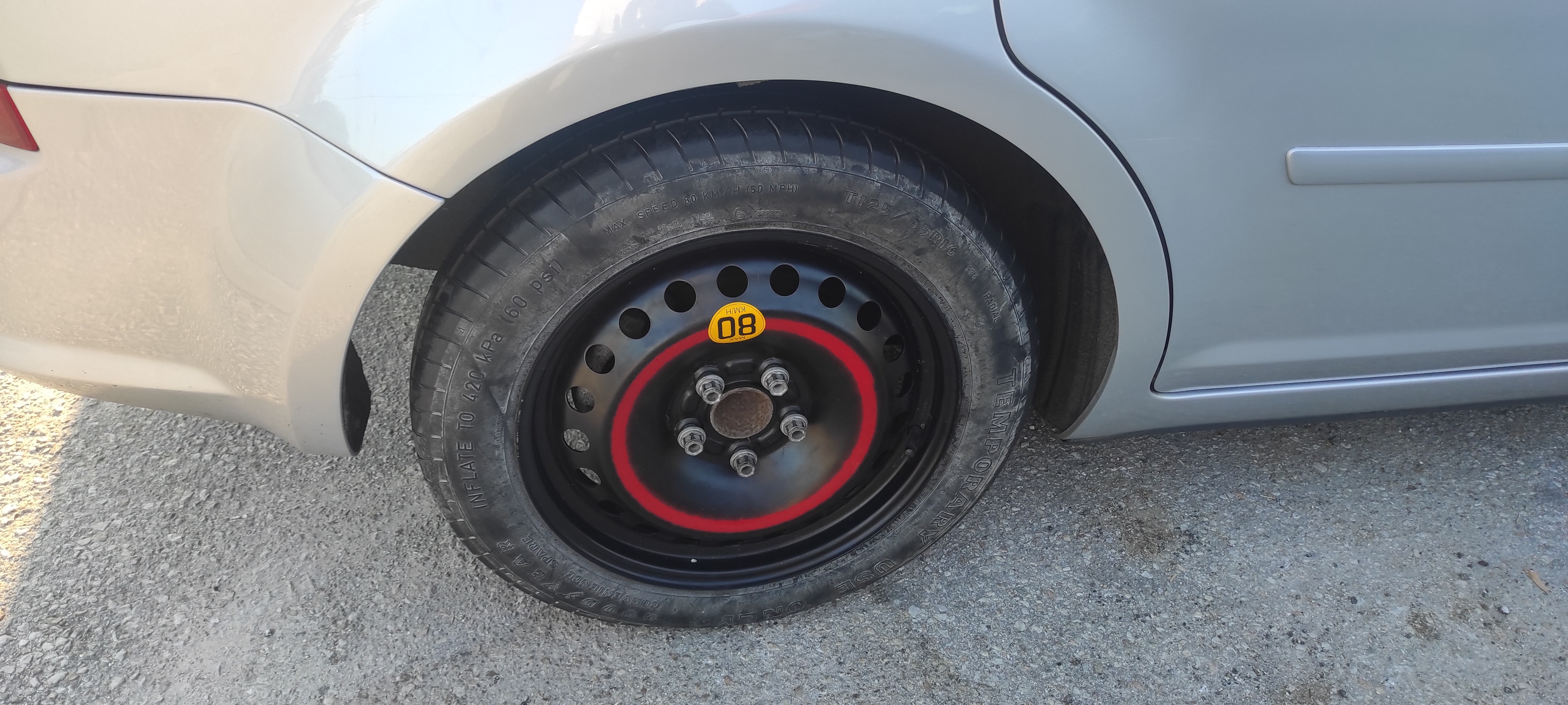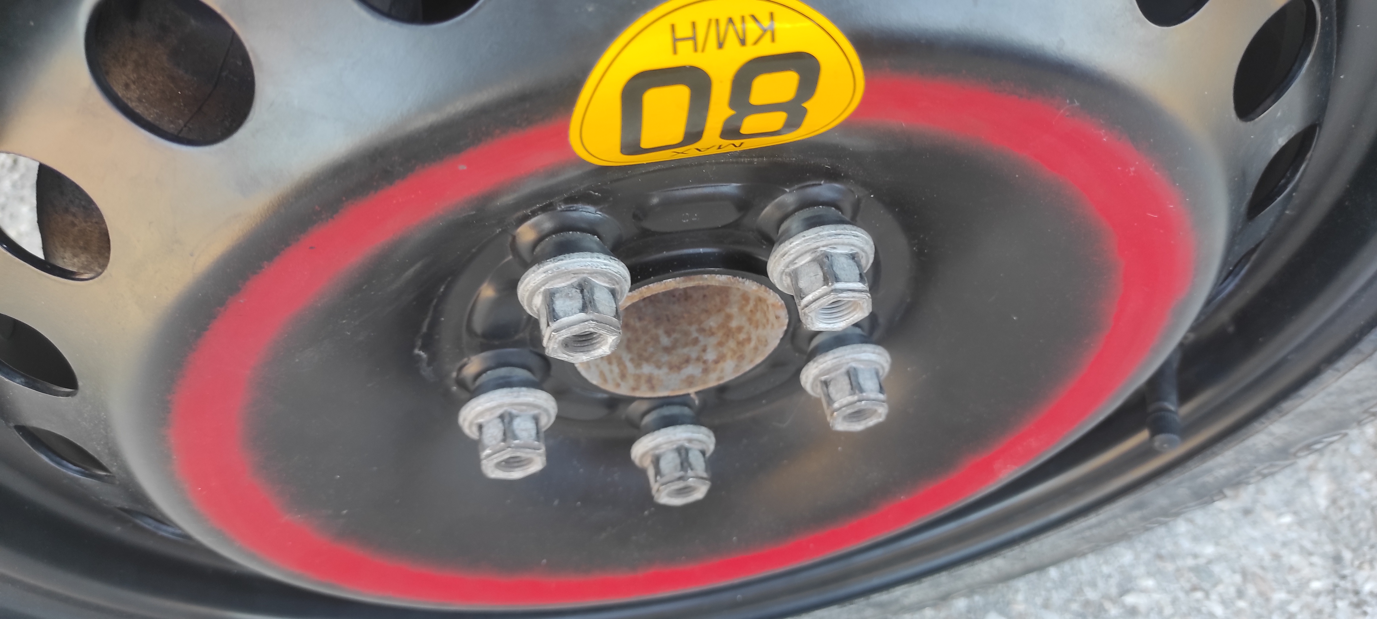 - патерицата е със стоманена джанта, а спуканата гума е с алуминиева джанта. Съответно се наложи да стегна стоманената джанта с гайки (конусни) за алуминиева джанта. Това дали е ОК да изкара до България ?