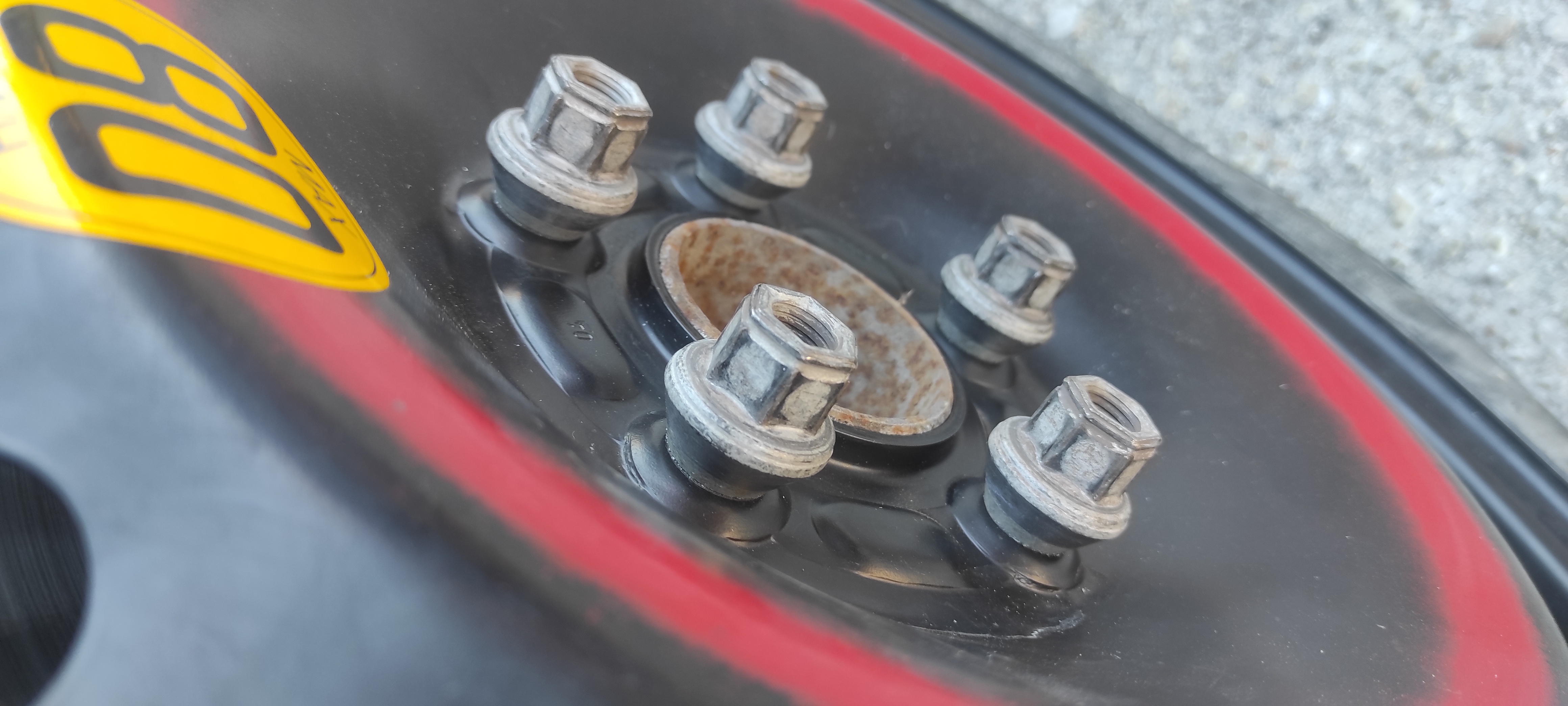 Няма проблем с гайките, притеснително е колко километра ще ти се наложи да караш до България. Нормално е такава тясна гума да е напомпена до такова налягане за да поеме тежестта. Отчитай че сцеплението ще е крайно недостатъчно и на някой завой задницата може да те изпревари, не случайно на джантата пише максимална скорост 80 Км/Ч.