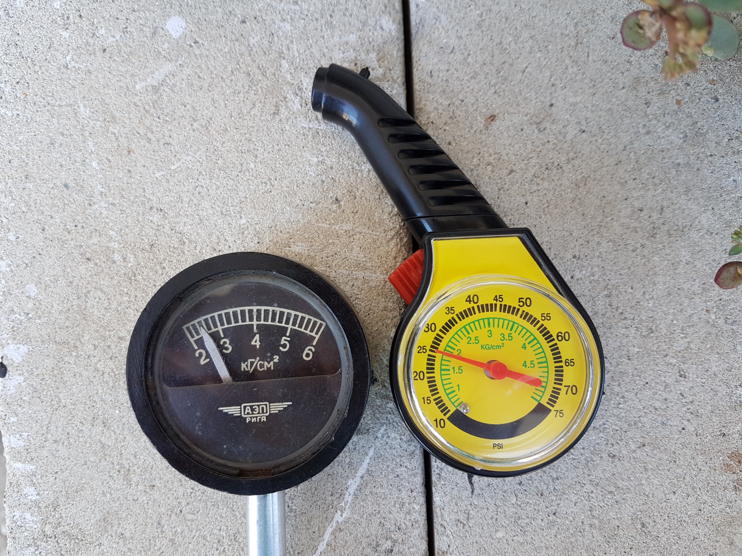 EDIT: Пускам снимки за да сравните какво показва стар руски манометър ( за тежкотоварни автомобили ) и този от МЕТРО при едно и също налягане: