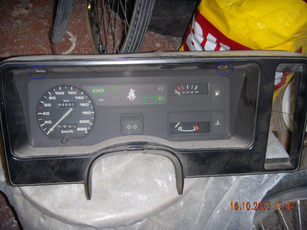 забравих да ти кажа че трябва да махнеш и черната пластмаса на кормилото тя също се дуржи на 4-ри винчета)После си виж да ли са ти здрави пистите и крушките. По мое мнение са ти изгорели крушките ама това ще си го видиш сам. лесно е и няма да ти отнеме много време можеш и сам да се справиш .