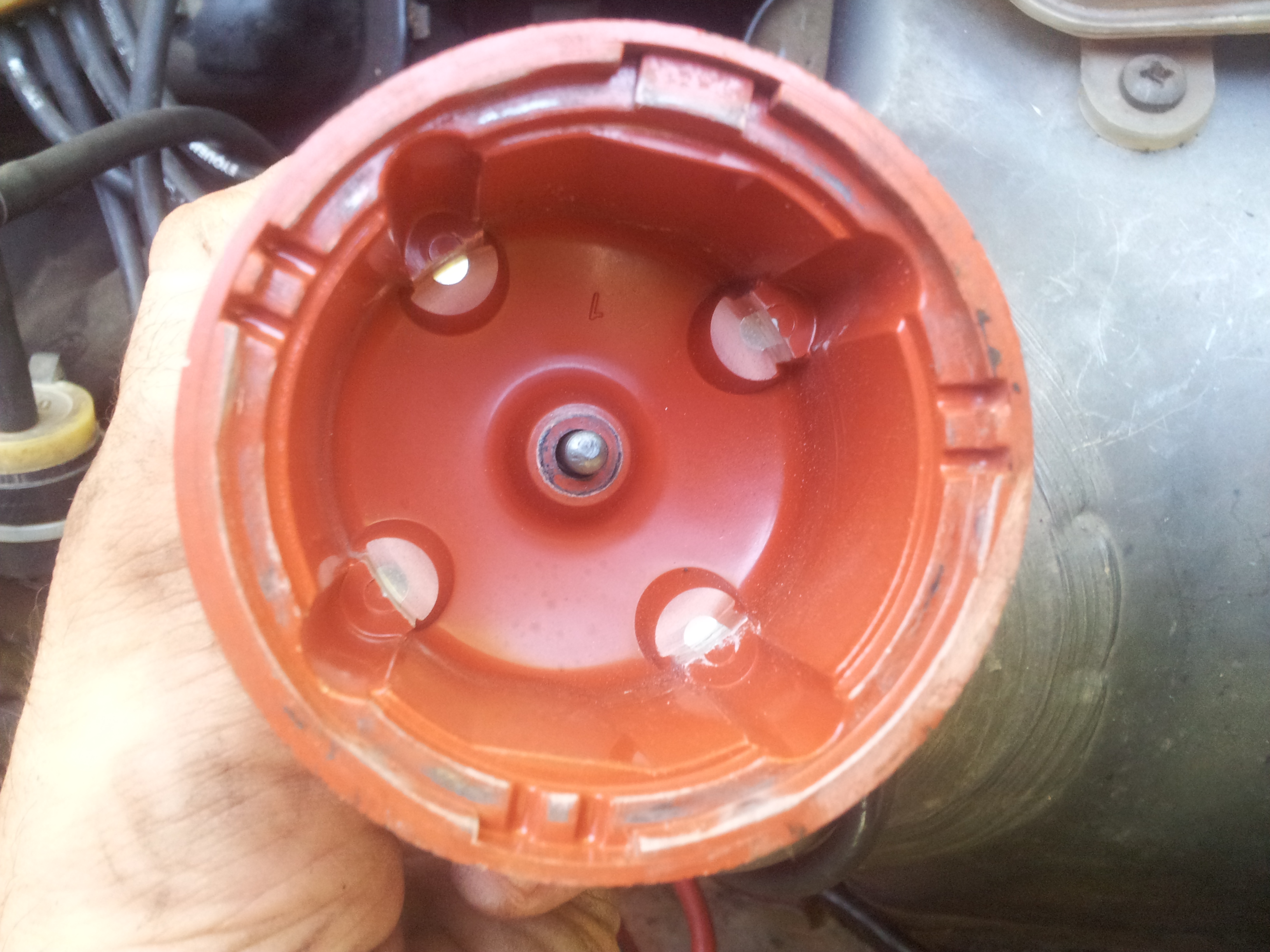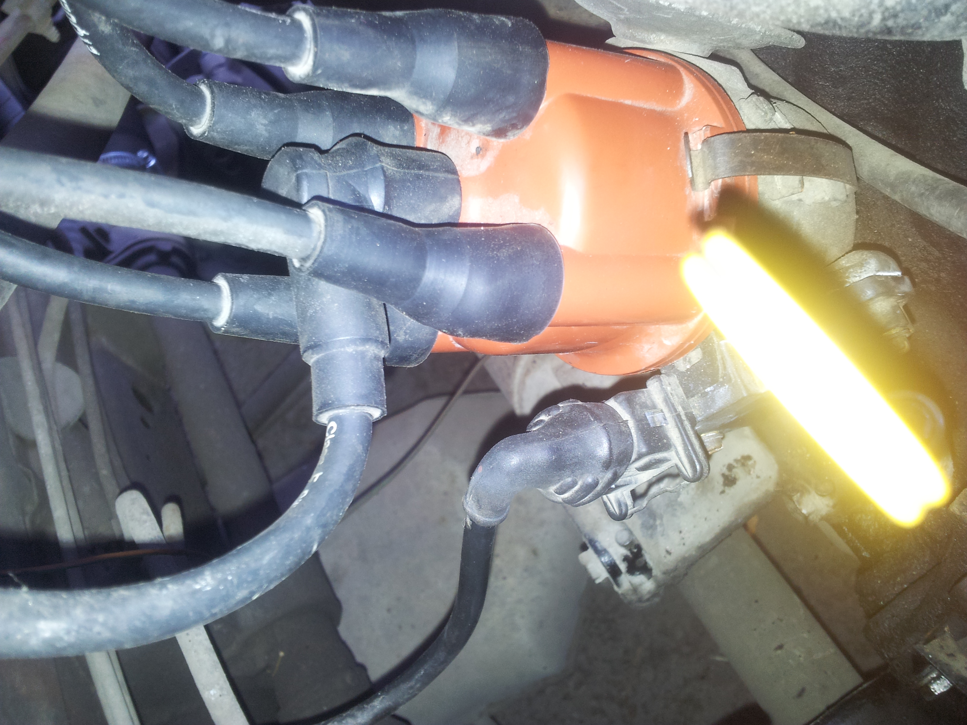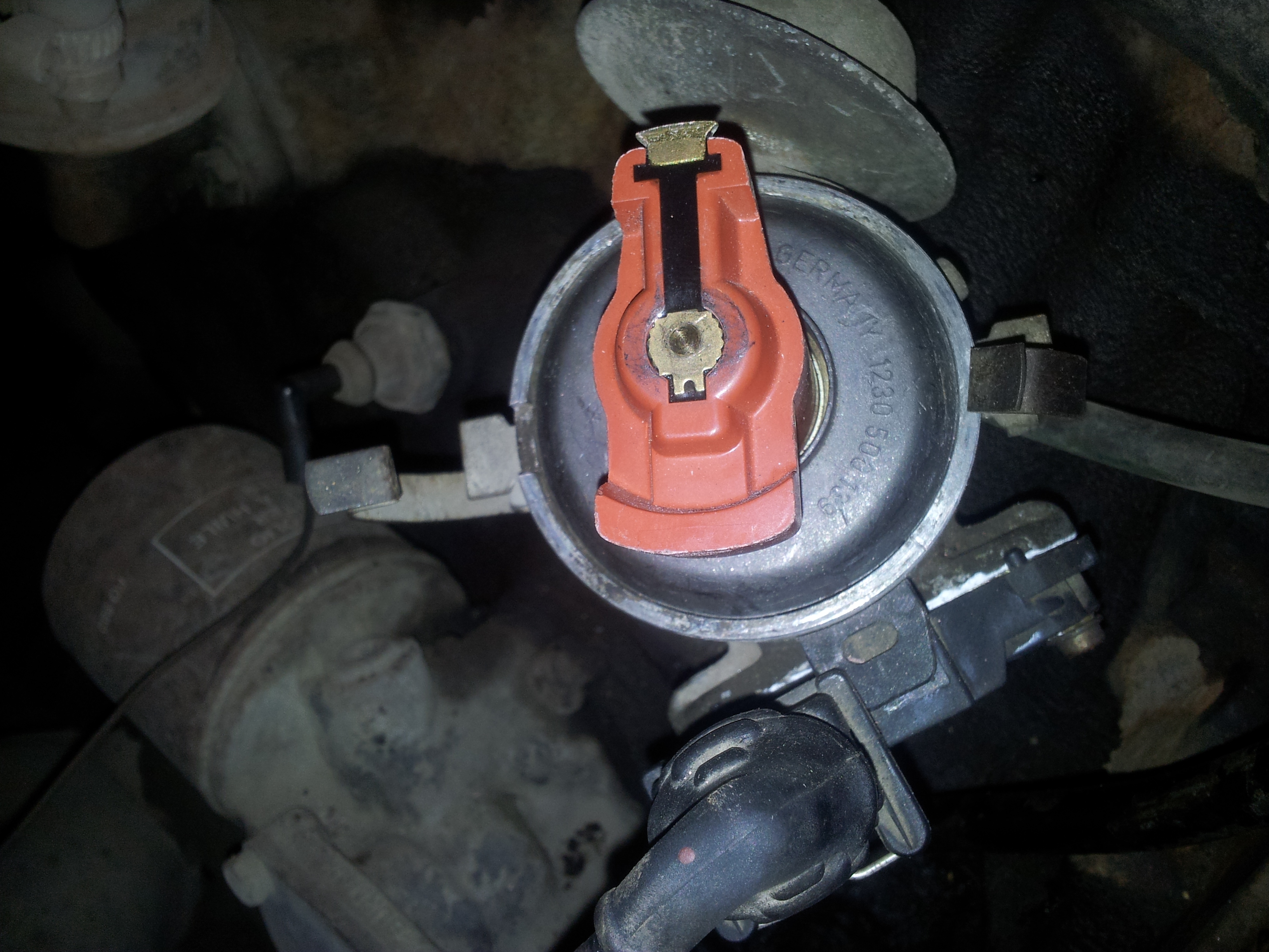 3. Гледам къде е палеца на капачката спрямо капачката (той трябва да е на положение да подаде искра на кабела на съответната свещ)