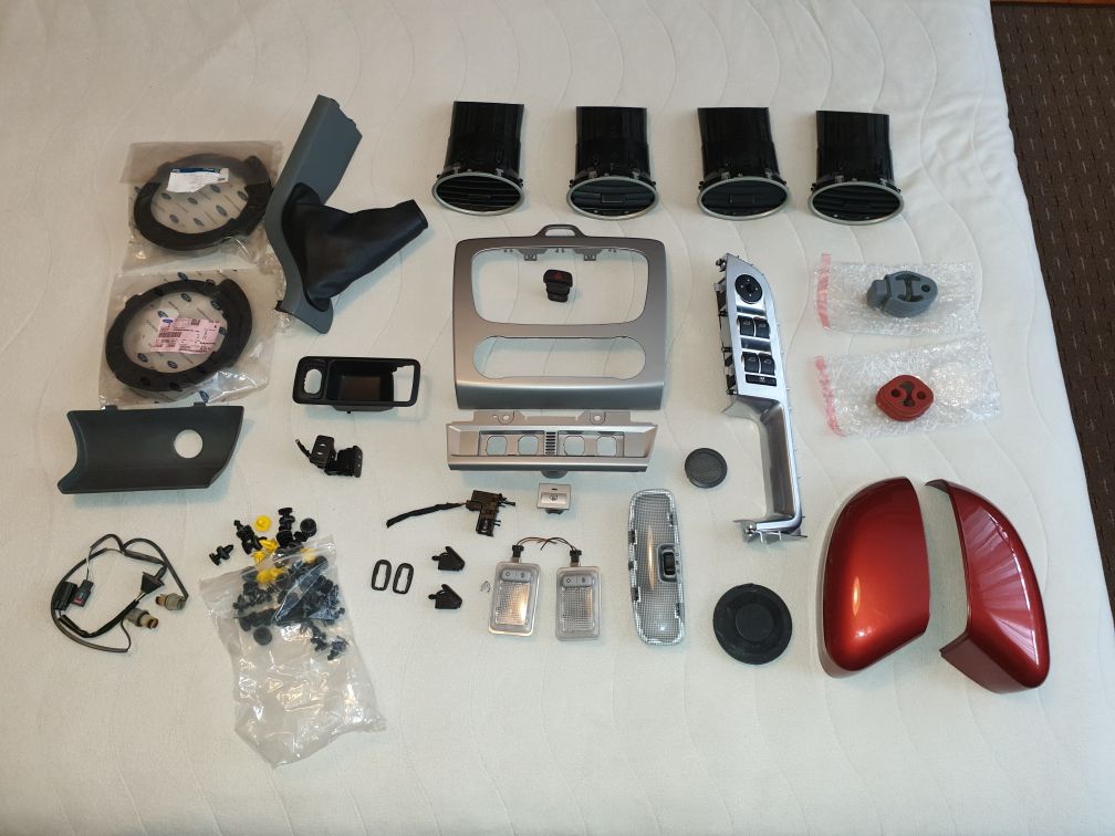 Всичко на снимките е почти фабрично ново и в перфектно състояние, Елементи от табло, модули, бутони, крепежи, капаци за страничните огледала, кабелния сноп от дръжката на багажната врата, кожен маншон за ръчна спирачка , за модела без подлакътник, въздуховоди, пуш бутона с осветлението за жабката, пръскалките за предния капак, капак за преден фар, маншони за закрепване на ауспух, нови манщонои за предните амортисъори, монтират се над пружината, стават и за по новия фокус и др.