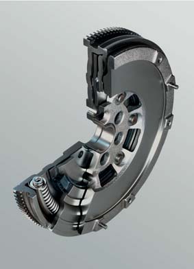 Докато чакам отговор да споделя какво прочетох. Двойният маховик си е обикновен, но разделен на две. Идеята е пружините да намалят вибрациите, особено в ниските обороти. На практика се синхронизира по-малка маса, което улеснява превключването.