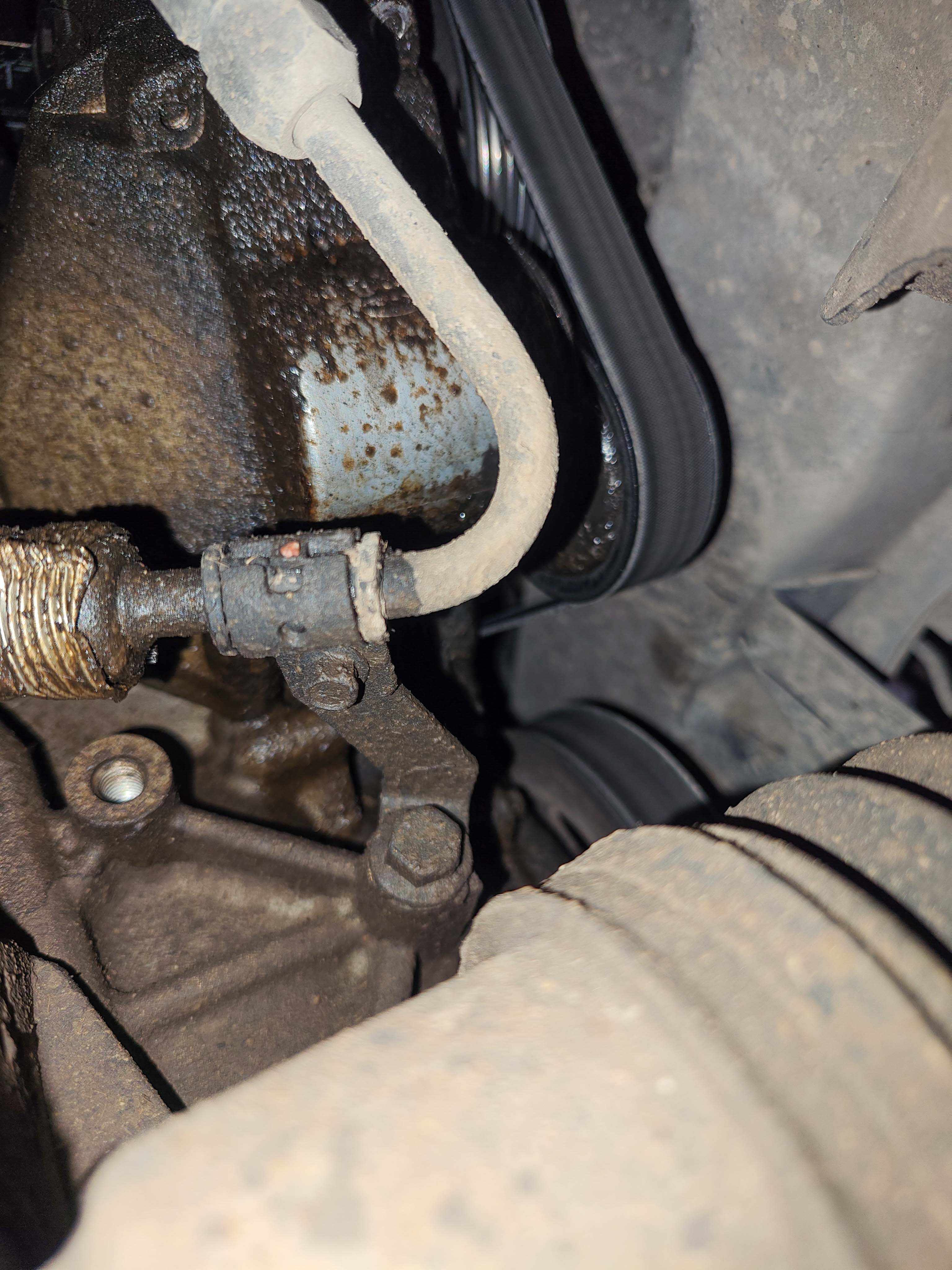 При смяна на спирачен цилиндър попитах монтьора за този теч, той ми каза, че това било от хидравличната помпа, но аз губя само моторно масло. Първара снимка е от интернет.