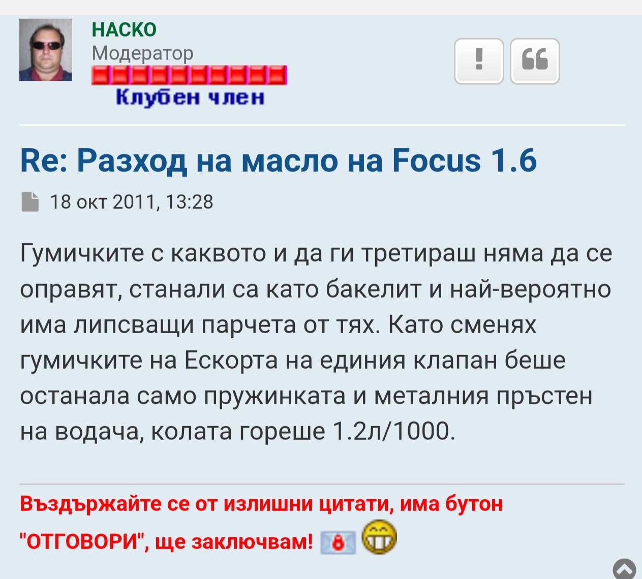 Re: Теч на масло от Focus mk.1 1.6 Zetec SE