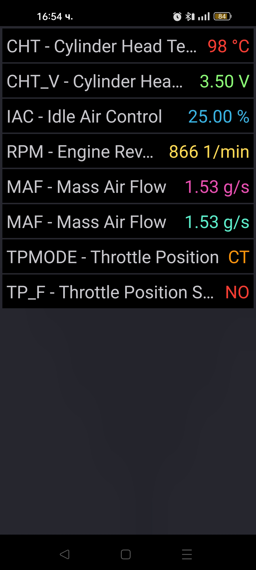 Проблема не е в дросела даже самият дросел съм го запушвал с тиксо само бях оставил дупката за стъпковият мотор да минава въздух резултат 0 гледал съм му клапата която му е плътно затворена даже почти няма процеп. На диагностика показва че ламбадата дава богата смес и че стъпковият мотор е открит повече от колкото трябва на празен ход демек на 15% процента повече. И никой не може да разбере какво кара компютъра да отвара стъпковият мотор повече за влиза повече въздух. На вторият фокус който работи идеално на празен разхода на въздух при дебитомера е 1,12 и стъпковият мотор затворен на 42% При Фокуса с високо обороти работещият показанията са 1,58 при дебиттомера на празен ход и стъпков мотор затворен на 25%. Другото което забелязах при извадена букса на VSS сензора колата не гасне на празен ход. Преди когато нещата бяха нормални с оборотите и ми смениха съединитела бяха забравили да го закачат буксата на сензора и на всяко спиране колата гаснеше. Пускам ви скриинове за да видите разликата.