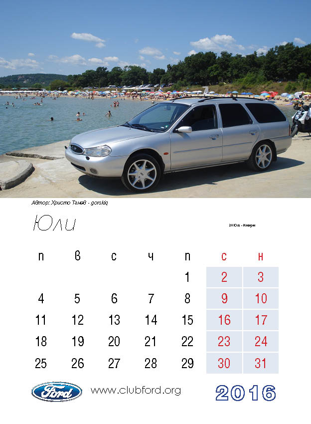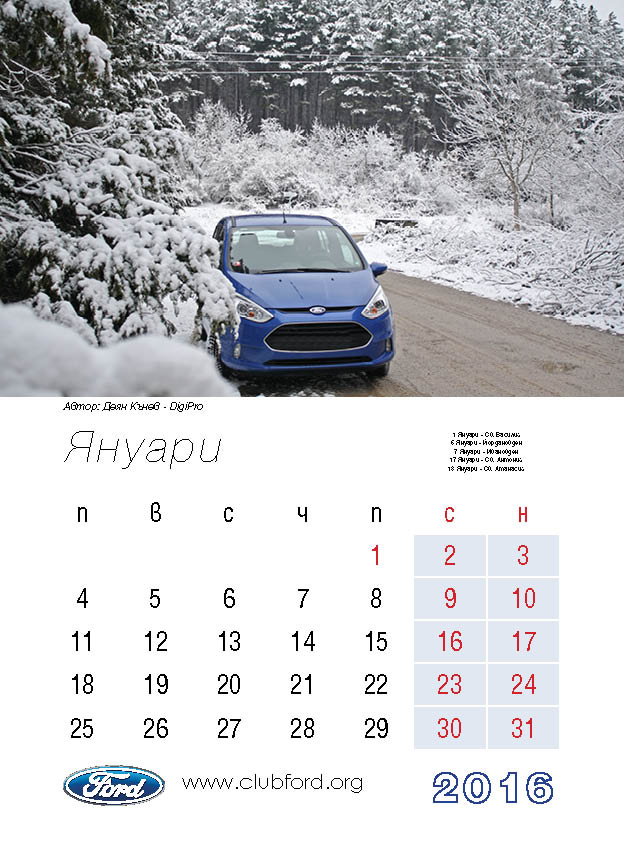 Календар на Клуб Форд България за 2016