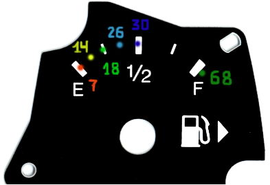 Абе колеги Вие имате ли лампичка за резерва /специално за дизелите/, че аз нямам такава! А колкото до това как отчита скалата мога да Ви кажа следното /абе странен феномен/ : значи като ми намалее количеството нафта в резервоара датчика в таблото съвсем коректно започва да си слиза надолу и така почти до край, обаче 20-30км. след това се получава нещо странно стрелката отива над червената зона и малко по-късно угасвам
