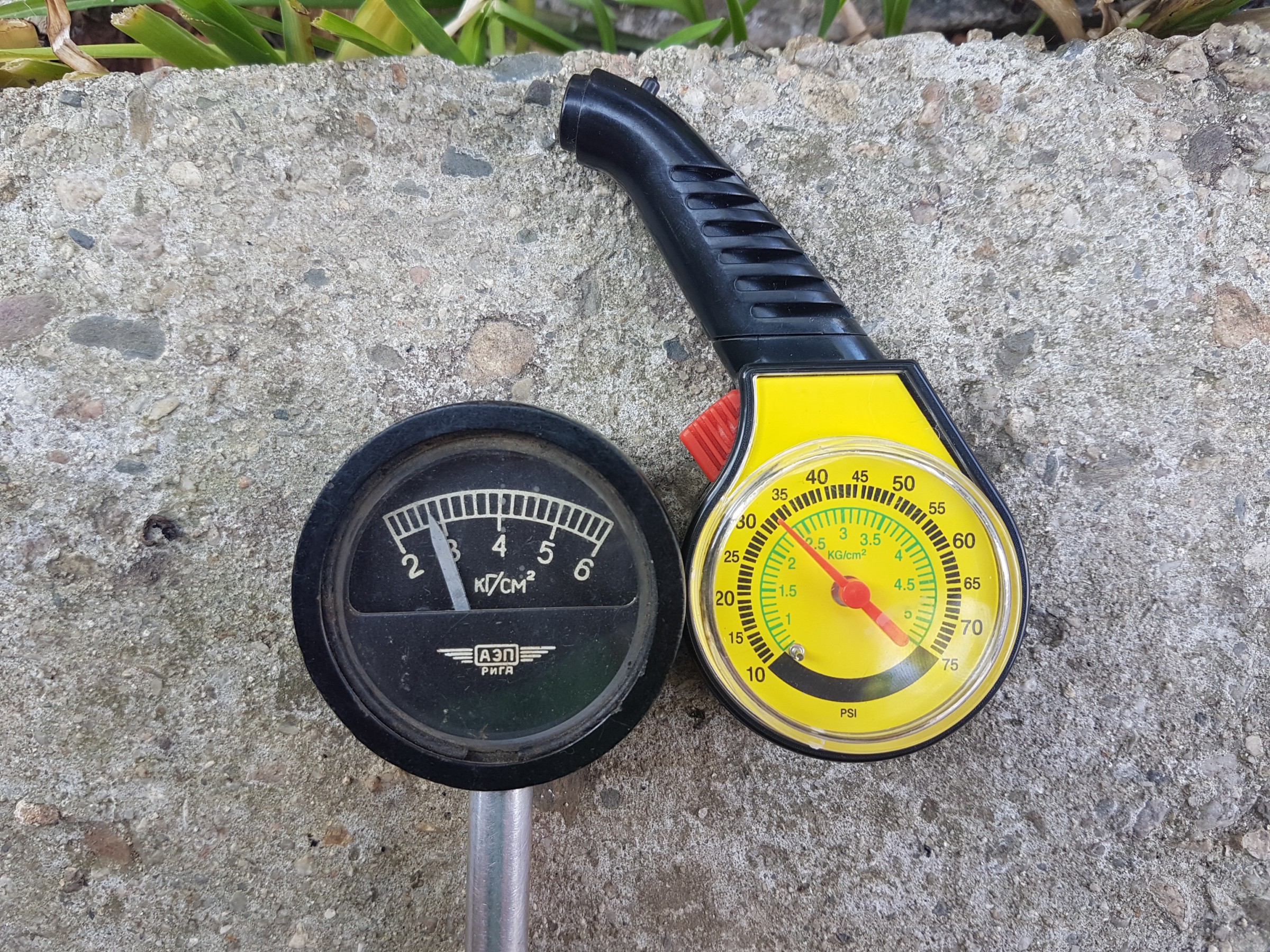 EDIT: Пускам снимки за да сравните какво показва стар руски манометър ( за тежкотоварни автомобили ) и този от МЕТРО при едно и също налягане: