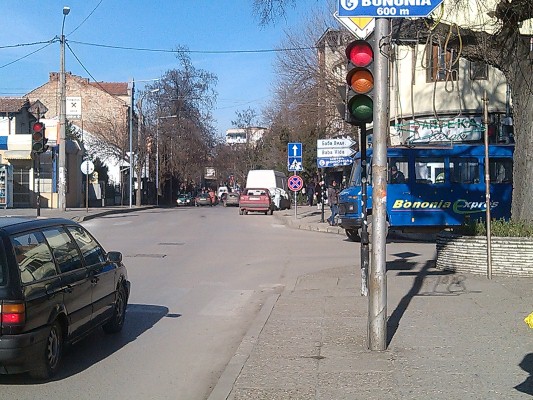 Наско, улицата беше еднопосочна преди да разкопаят града за водния цикъл. Като видяха какви задръствания се заформиха по малките улички, сложиха по един найлонов чувал на знаците за еднопосочна улица и тя стана двупосочна. Снимките ги качих, защото минути преди да ги направя, два големи автобуса за 50 пътника и един междуселски автобус за 20-тина пътници, се срещнаха и образуваха тапа. Един дръвник бе спрял Мерцедеса си на метър от бордюра, стоеше в колата си и не мръдна колата, за да улесни поне малко водачите на автобусите. Просто бях адски възмутен и сам не знам какво ме спря да не му се развикам. Иначе всяка сутрин от 8 до 9 при всеки един от сниманите знаци стои по един полицай, за да не спира никой.
