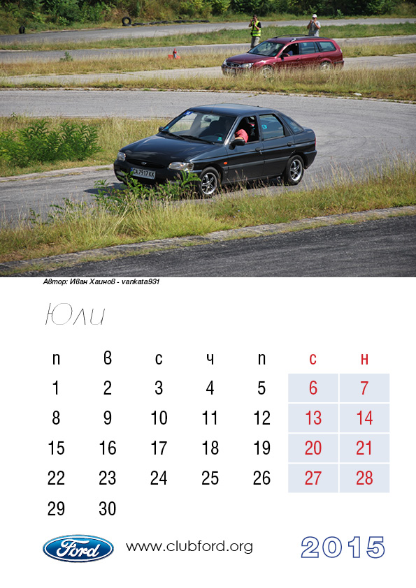 Календар на Клуб Форд България за 2015