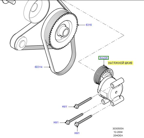 Аз не мога да разбера как това нещо е самонатягащо се след като на мен ми изглежда 100% фиксирано. Номера му е 5M5Q-8680-ACThe longer drive belt drives the alternator and the coolant pump. A self-adjusting belt tensioner is used to tension the belt.