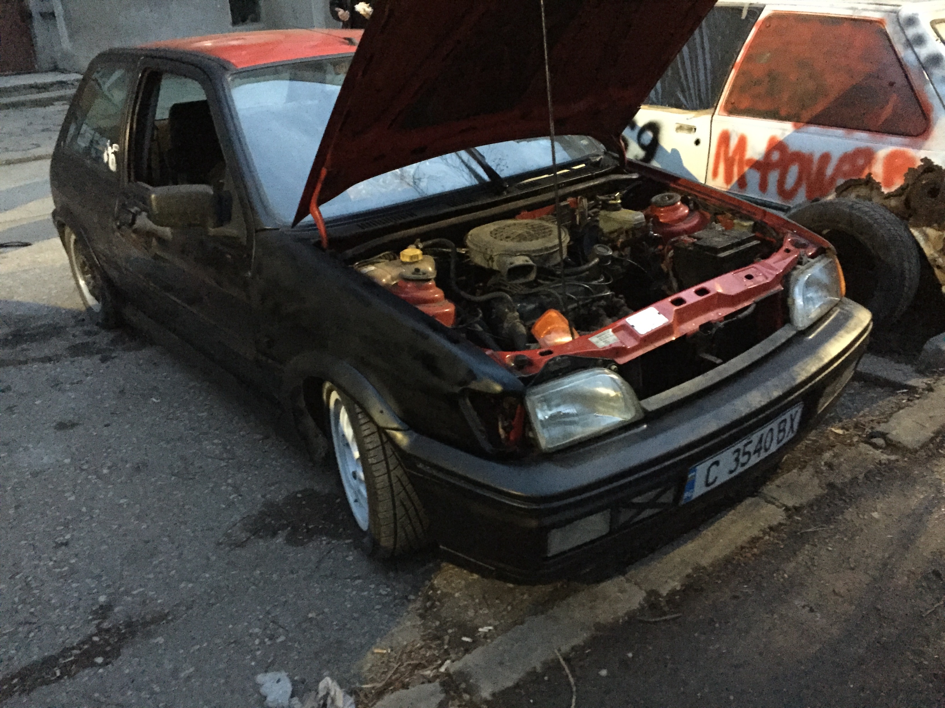 Здравейте . Реших да ви представя първата си кола ford fiesta mk3 от 91 година. Двигателя е много слаб 1.1 50 коня , купето е доста запазено като за форд... но е ударена преди години отзад и е започнала да загнива. Нямам много снимки на колата но я имам от 2 месеца и всяка свободна секунда съм покрай нея.А за форума разбрах от един приятел а и от малък се радвам на коли с раждясали калници или капаци и реших и мойта да стане рат. Надявам се да ви хареса