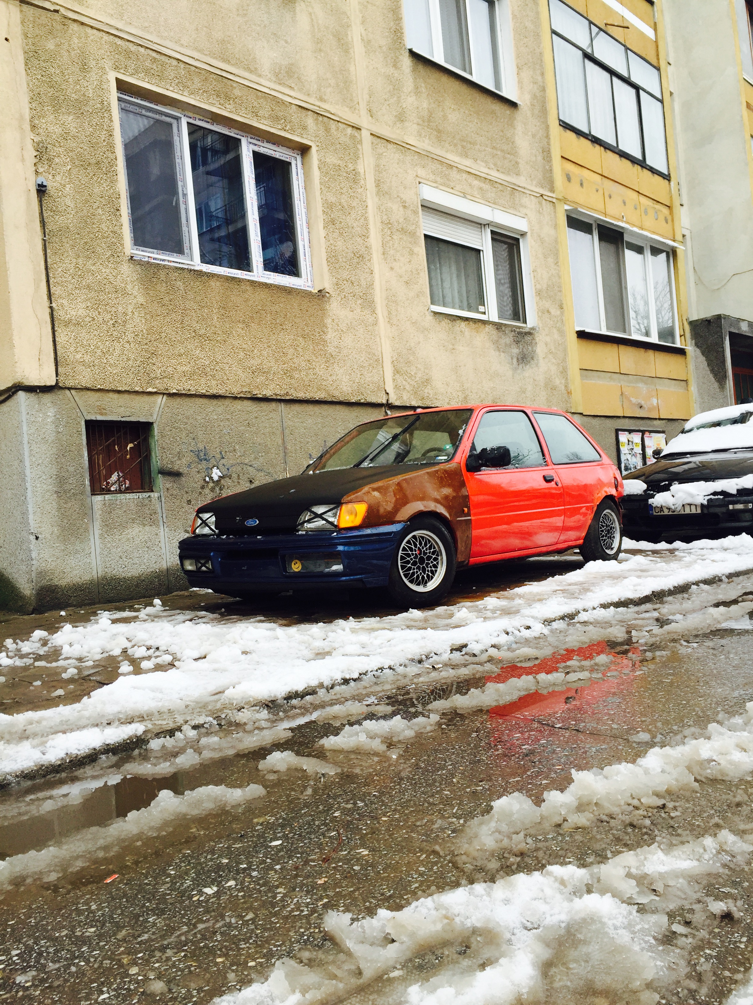 Здравейте . Реших да ви представя първата си кола ford fiesta mk3 от 91 година. Двигателя е много слаб 1.1 50 коня , купето е доста запазено като за форд... но е ударена преди години отзад и е започнала да загнива. Нямам много снимки на колата но я имам от 2 месеца и всяка свободна секунда съм покрай нея.А за форума разбрах от един приятел а и от малък се радвам на коли с раждясали калници или капаци и реших и мойта да стане рат. Надявам се да ви хареса