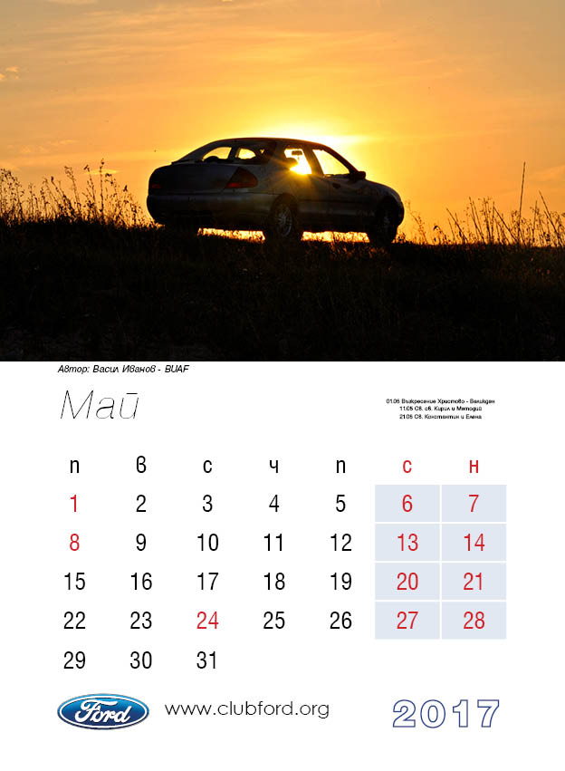 Календар на Клуб Форд България за 2017