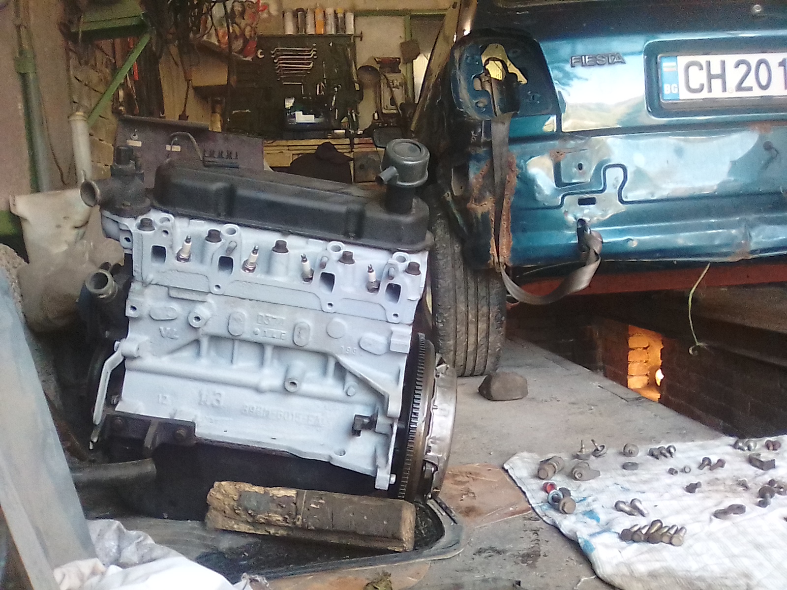 За 2 дена качих двигателя наредих му инсталацията и реших да го паля но... Стартера реши че трябва да се преебе че го разглобих хем го смазах хем му смених четките, и днес колата запали от раз,мърка като малко коте (дано божинката да не чете поста). Утре ако остане време ще почвам да режа и да напасвам веждите и праговете