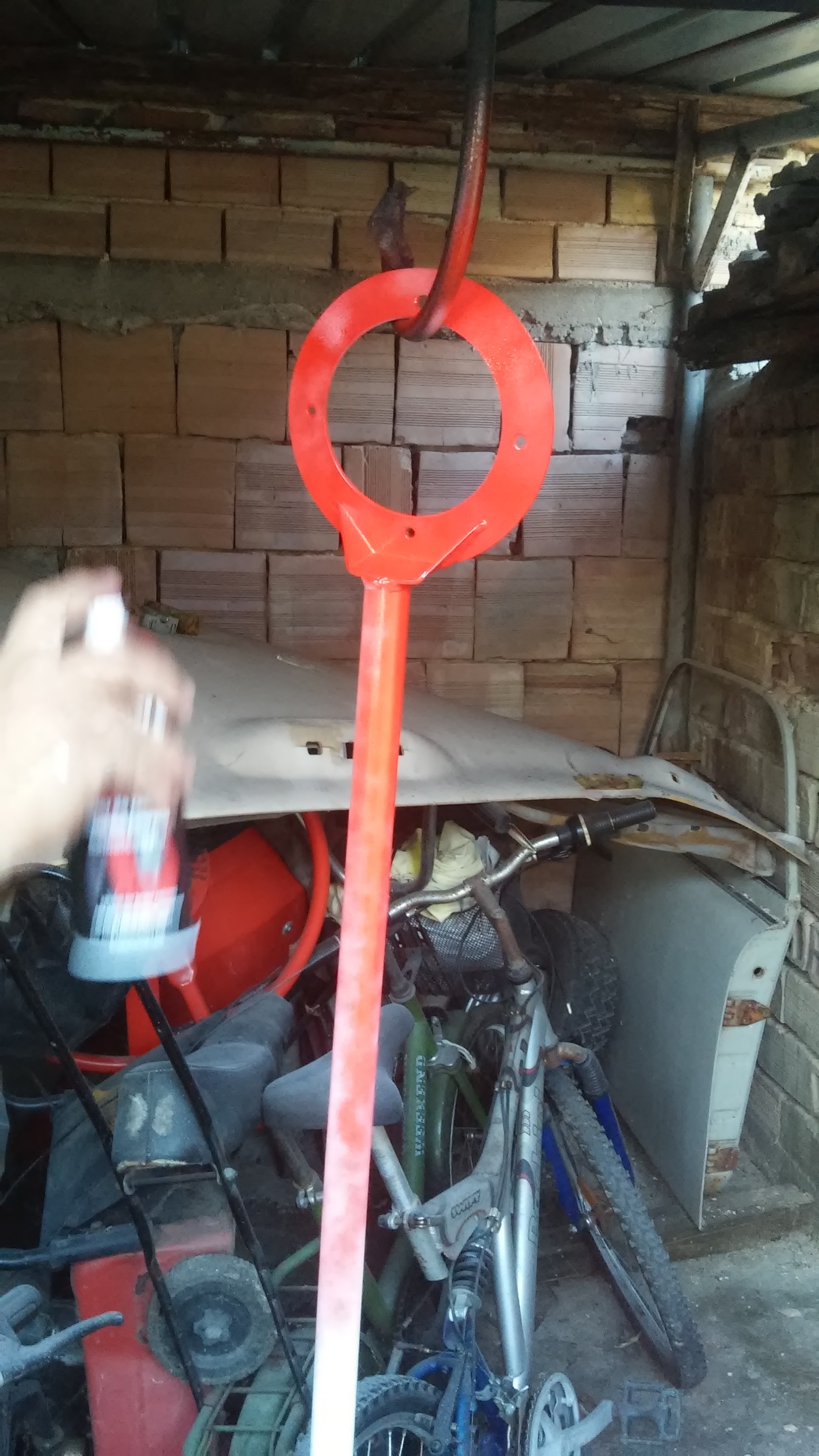 премахване на оксидирането и старата боя премахването на старата боя и самата подготовка вобще не беше лесна задача... първо пробвах на ръка да одстраня боята ръчно... (изгубена кауза ако бях продължил на ръка можеби някъде към 2020г щях да бъда готов) след това реших да пробвам евентуално с пистолет за горещ въздух но уви нещата станаха по зле боята не беше случайна (както и аз ня я боядисах със случайна такава) та... решението беше добрия стар ъглошлайф с телена четка както се и вижда на снимките резултата според мен се получи задоволително добре. Но както казах не беше лесно самата боя се размазваше като пастел налагаше ми се многократно да пофтарям, но както и да е сега дойде реда за боядисването