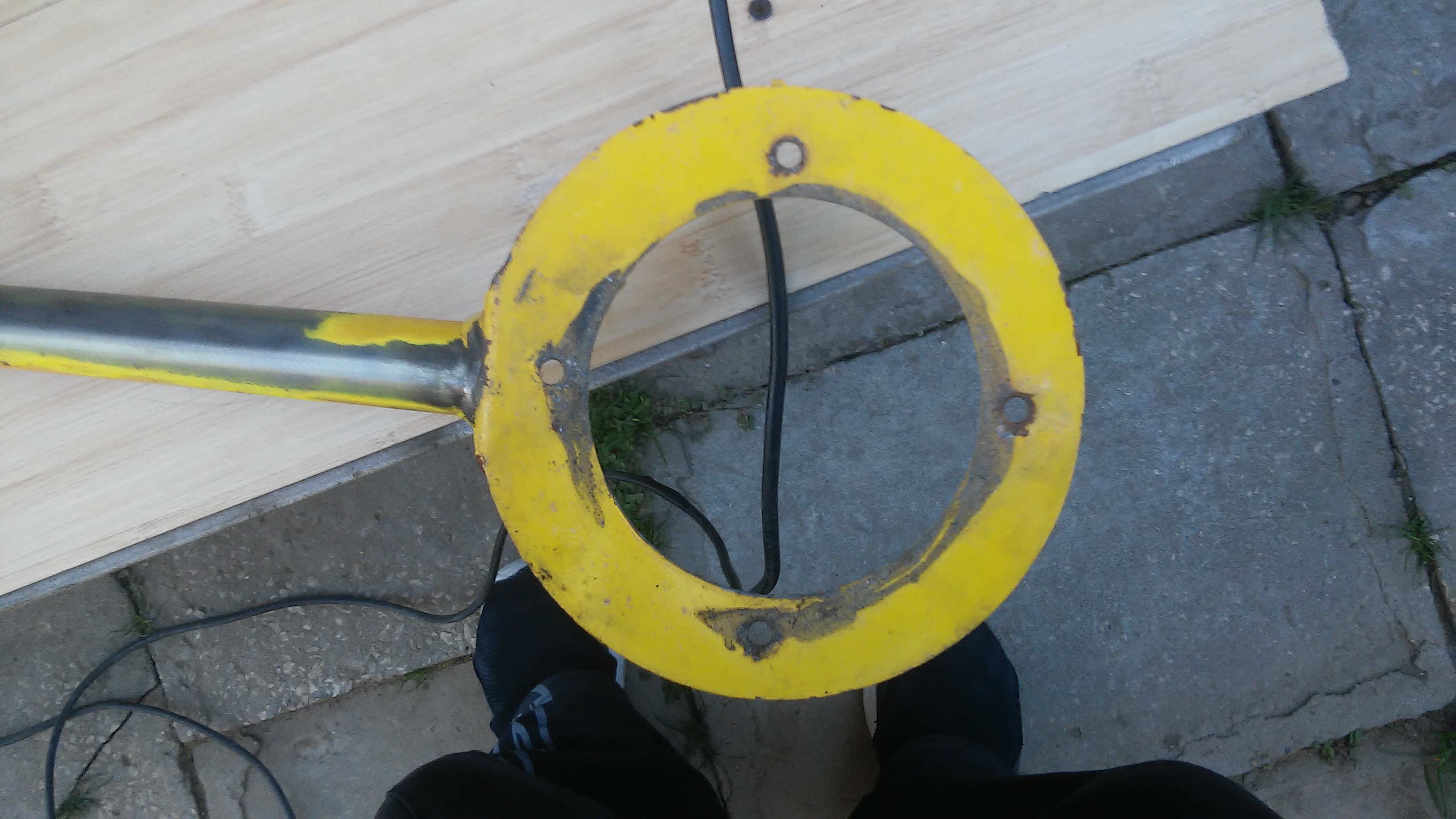 премахване на оксидирането и старата боя премахването на старата боя и самата подготовка вобще не беше лесна задача... първо пробвах на ръка да одстраня боята ръчно... (изгубена кауза ако бях продължил на ръка можеби някъде към 2020г щях да бъда готов) след това реших да пробвам евентуално с пистолет за горещ въздух но уви нещата станаха по зле боята не беше случайна (както и аз ня я боядисах със случайна такава) та... решението беше добрия стар ъглошлайф с телена четка както се и вижда на снимките резултата според мен се получи задоволително добре. Но както казах не беше лесно самата боя се размазваше като пастел налагаше ми се многократно да пофтарям, но както и да е сега дойде реда за боядисването