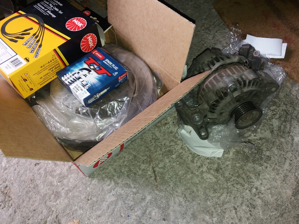 Малко профилактика : нови кабели , свещи , рециклиран Алтернатор , дискове , предни и задни накладки . Не знам дали съм писал по - назад в темата , тоя мотор върви най - добре с луфт на свещите 1.1мм ( поне при мен , не казвам че при всички е така ) .