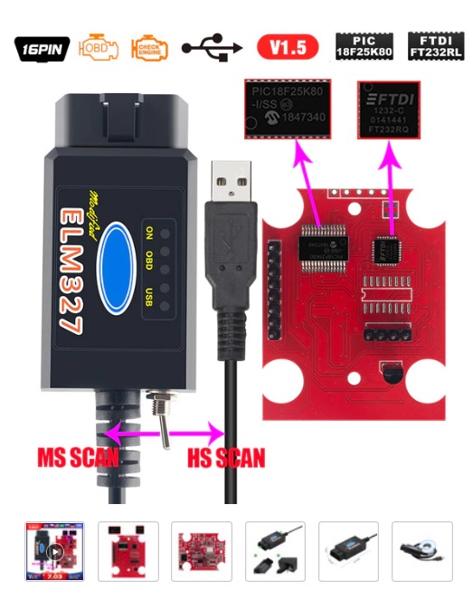 2. ELM 327 с превключвател за MS-CAN и HS-CAN и чип на FTDI