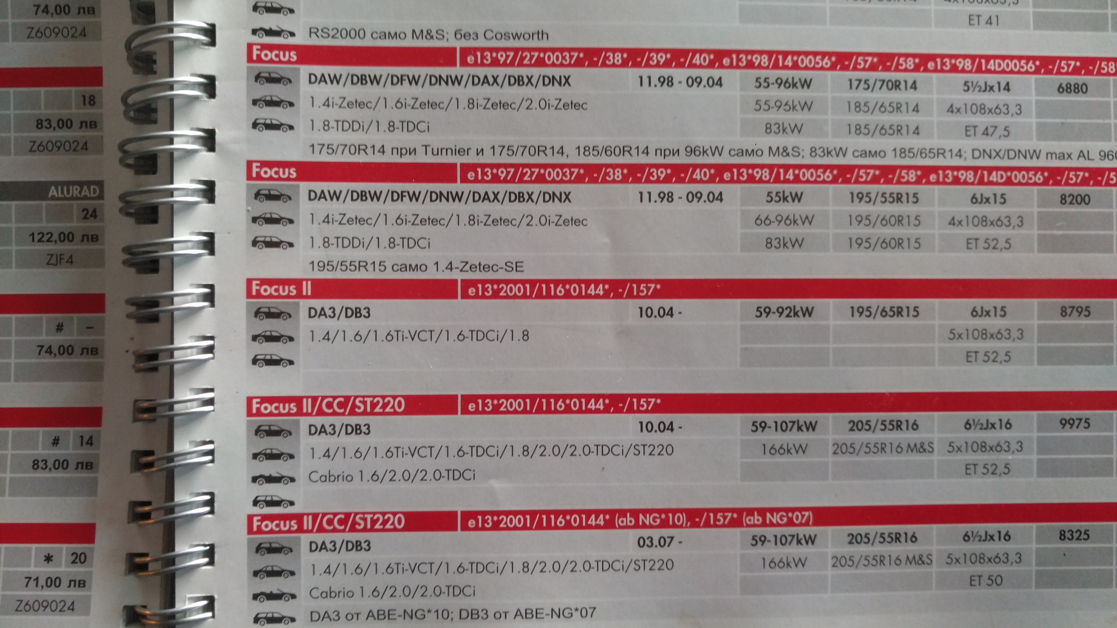 Таблицата не е особено точна. Специално за Фокус преснимах каталог за джанти, ползван от гумаджии. Като гледам какви свалям от колите като оригинални джанти, този се припокрива точно.