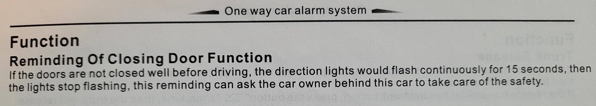 Понеже не ми дава мира /и благодарение на съвета да сенасоча към алармата/ дълбоко в жабката открих някаква книжка с поставяната преди 10г. аларма. Там открих функцията "Reminding of closing door function" , коята е точно това, което искам да деактивирам. За съжаление обаче в ръководството не се споменава въобще такава възможност.