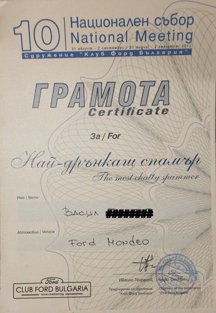Васе имам кадър от връчването на грамотата, И аз бях там.