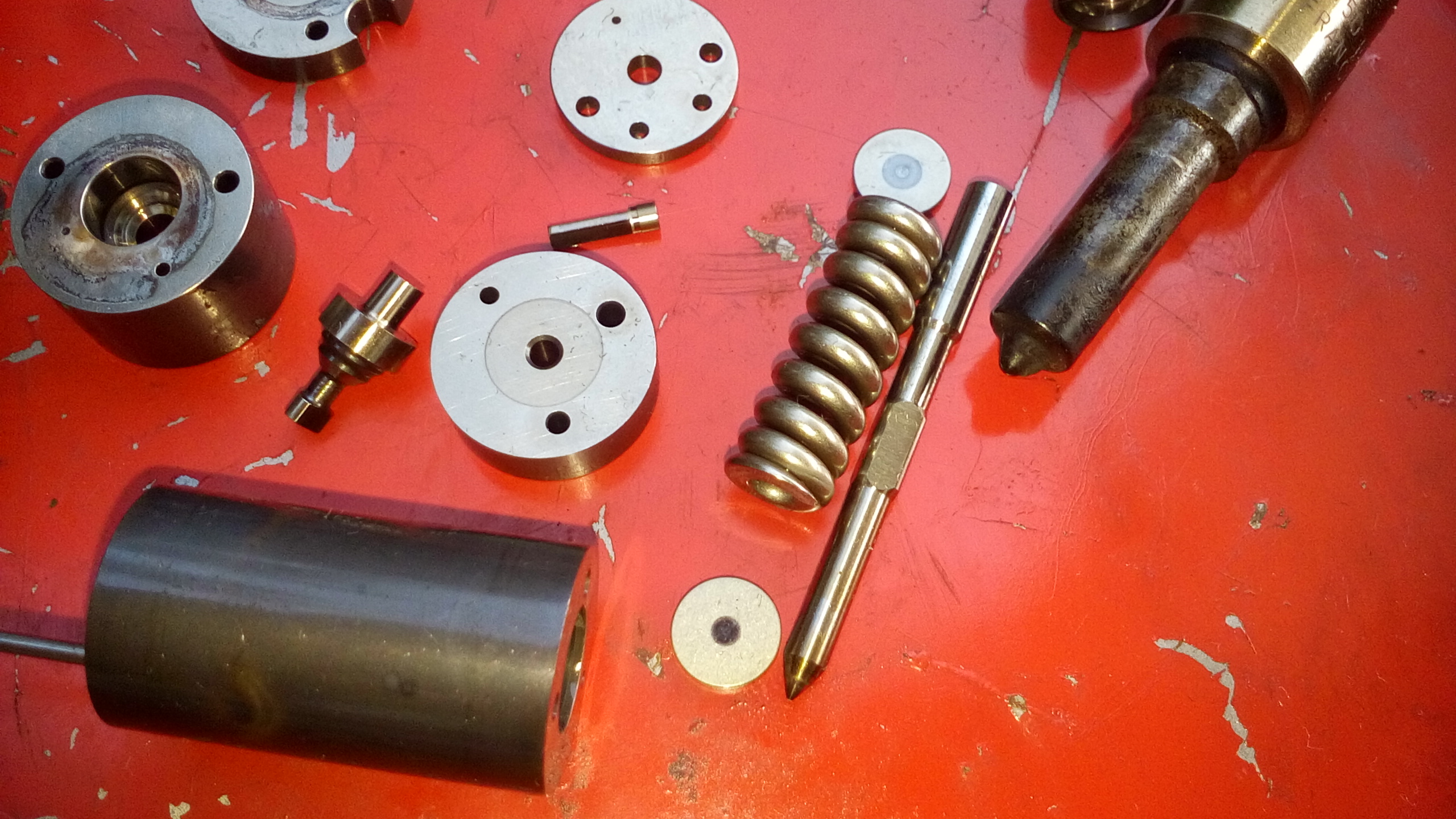 Както и да е започнах да разглобявам дюзите. Различават се от тези в клипа, но не е проблем. От същия тип са. Да но когато свалих долната част всичко се разпадна. Щифтовете на които се нанизват отделните елементи и разпъсквача се оказаха счупени и на четирите дюзи на различни места. Причината за това не е ясна, но се припотих 100 пъти.