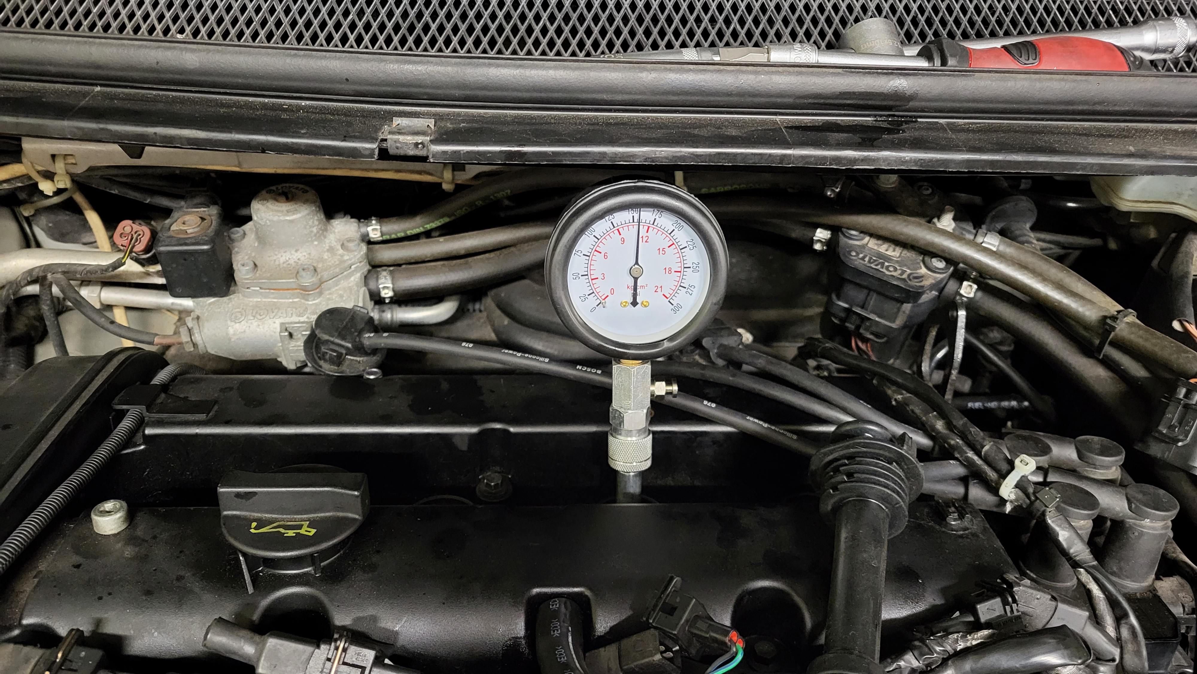 Първи, втори и трети цилиндър са с почти идентични стойности на налягането, при това съвсем не лоши. Четвърти цилиндър обаче е зле, поне според показанията на компресомера.