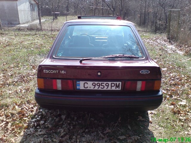 Днес най-после се наканих да си снимам колата,и ето го-Ескорт 1.6i централно заключване,ел. стъкла,люк,АГУ,първа регистрация 1990год.